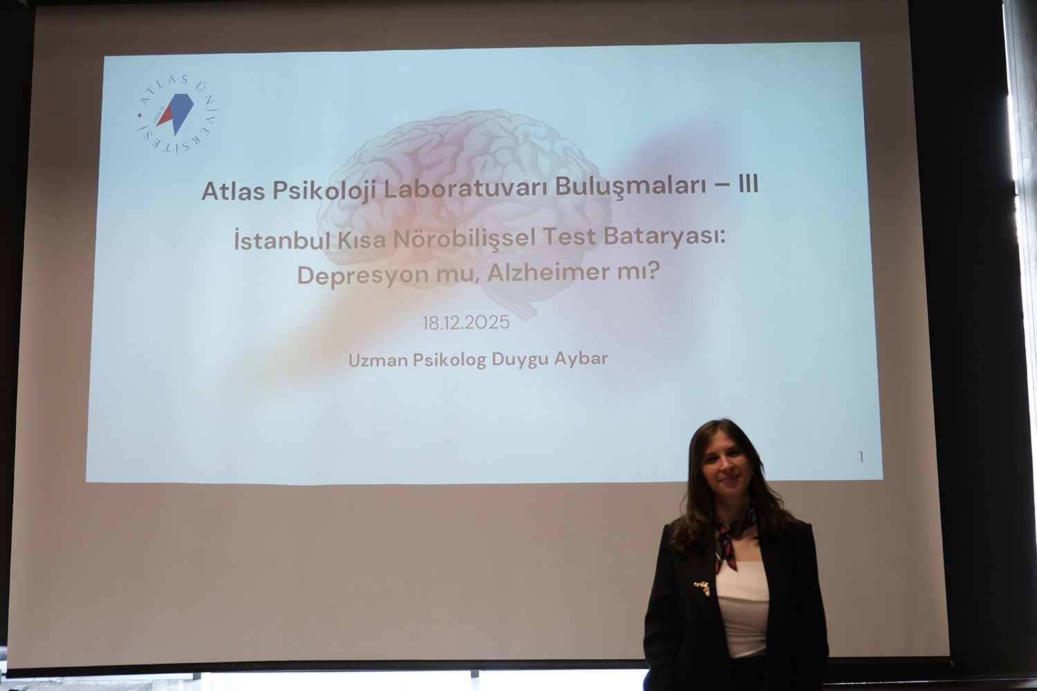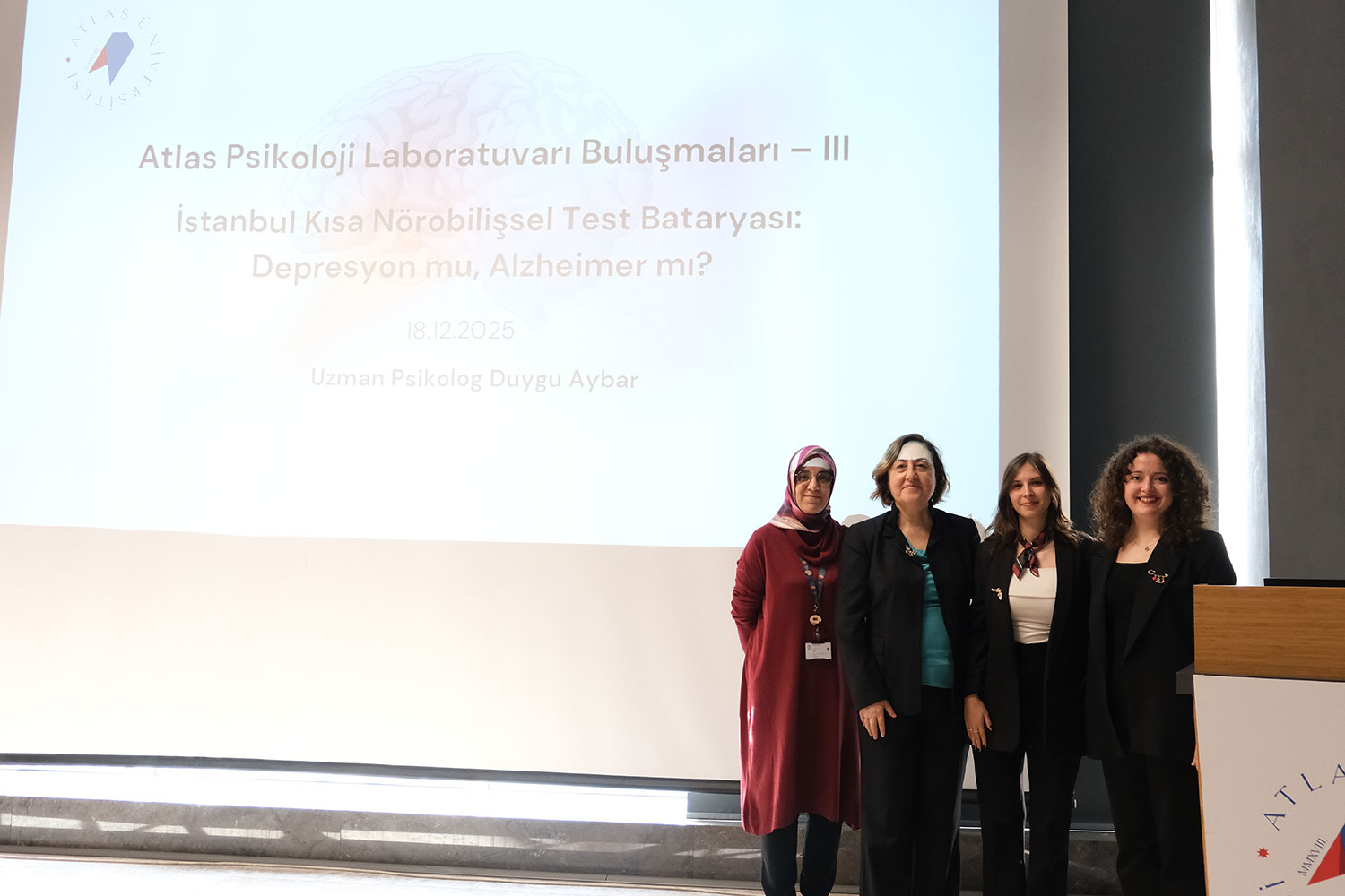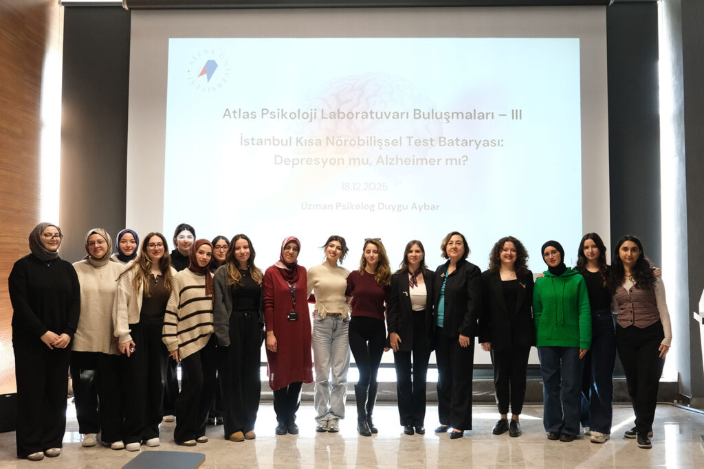 Atlas Üniversitesi Atlas Psikoloji Laboratuvarı Buluşmalarının üçüncüsü, “İstanbul Kısa Nörobilişsel Test Bataryası: Depresyon mu, Alzheimer mı?” başlığıyla gerçekleştirildi. Uzman Psikolog Duygu Aybar’ın sunumuyla düzenlenen etkinlikte, yaşlılık döneminde sıkça karıştırılan iki önemli sağlık sorunu arasındaki ayırıcı tanı yöntemleri ele alındı.