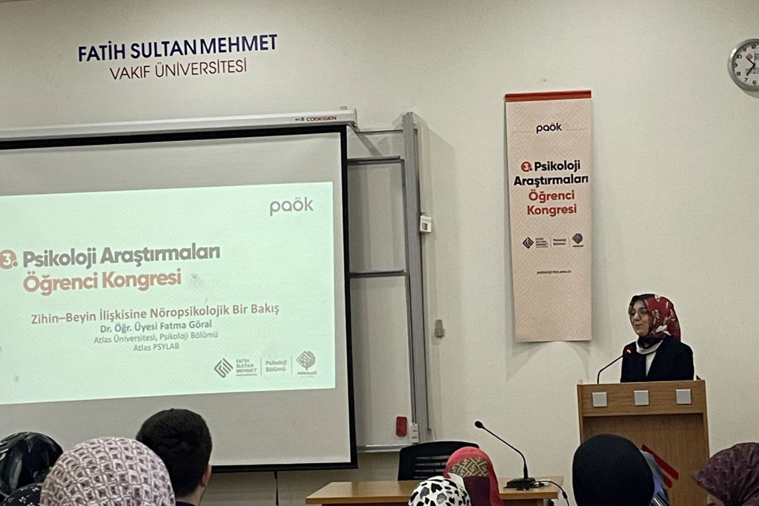 Atlas Psikoloji Laboratuvarı koordinatörlerimizden Dr. Öğr. Üyesi Fatma Göral, 13-14 Aralık 2025 tarihleri arasında Fatih Sultan Mehmet Vakıf Üniversitesi ev sahipliğinde düzenlenen 3. Psikoloji Araştırmaları Öğrenci Kongresi’nde açılış konuşmacısıydı.